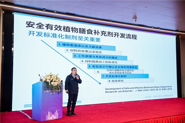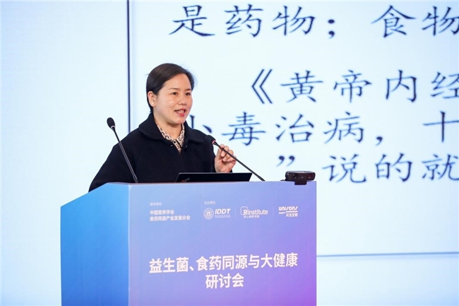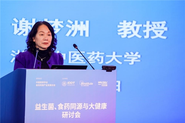 中國營養保健食品協會法標委副主任委員李文軍 中國營養保健食品協會法標委副主任委員李文軍從特殊醫學用途配方食品的角度出發,介紹了中國在該領域的需求、相關法規以及發展趨勢。 他解釋了特殊醫學用途配方食品的定義、分類和應用場景,并分析了國內外在該領域的法規和標準差異。他還指出中國特殊醫學用途配方食品市場存在的問題和挑戰,并提出了加強產品研發、完善法規和標準體系等建議。 謝夢洲:《藥食同源類中藥對腸道微生態的影響及展望》