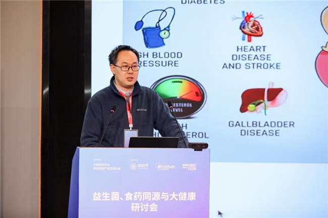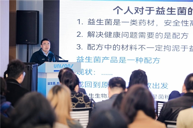 廣東省科學院微生物研究所研究員謝黎煒 廣東省科學院微生物研究所研究員謝黎煒重點介紹了益生菌代謝物在代謝調節中的重要作用。 他指出,益生菌在腸道內可以產生短鏈脂肪酸、維生素等多種有益的代謝物,不僅可以為宿主提供營養和能量,還可以通過調節宿主的代謝通路來發揮更加廣泛的作用。例如,某些益生菌代謝物可以促進脂肪代謝和糖代謝,從而改善肥胖和糖尿病等代謝性疾病。他的研究不僅揭示了益生菌代謝物在代謝調節中的重要作用,還為益生菌的功能研究與應用開發提供了新的思路和方法。 劉威:《益生菌與腸道微生態的產業期待》