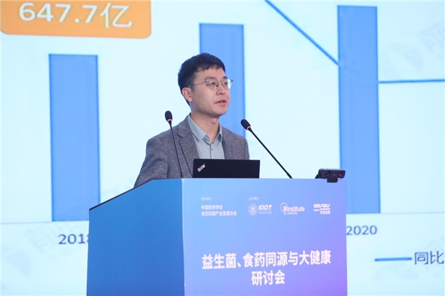 健合集團中國區科學交流與產品培訓總監劉威 健合集團中國區科學交流與產品培訓總監劉威從產業的角度出發,分享了益生菌與腸道微生態領域的產業期待和發展趨勢。 他介紹了益生菌的種類、功能以及在腸道微生態中的作用機制,分析了當前市場上益生菌產品的種類和應用場景。同時指出了產業在發展過程中遇到的問題和挑戰,并提出了加強科研合作、推動產品創新等建議。他的發言為益生菌與腸道微生態產業的健康發展提供了有益的參考和指導。 蔣劉一琦:《食藥同源與腸道微生態產學研最新進展》