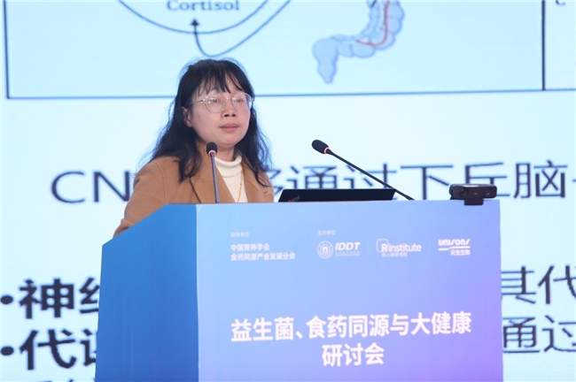 南京醫科大學特聘教授劉星吟 南京醫科大學特聘教授劉星吟在報告中深入探討了益生菌與宿主表觀遺傳修飾之間的密切關系。她指出,益生菌不僅通過調節腸道微生態平衡維護宿主健康,還可以影響宿主的表觀遺傳修飾發揮更加深遠的作用。 表觀遺傳修飾是指在基因序列不變的情況下,通過改變DNA甲基化、組蛋白修飾等方式調控基因表達的過程。某些益生菌可以通過調節宿主的表觀遺傳修飾,影響宿主的代謝、免疫和神經等生理過程,為益生菌的功能研究和應用提供了新的視角。 謝黎煒:《益生菌代謝物的代謝調節》