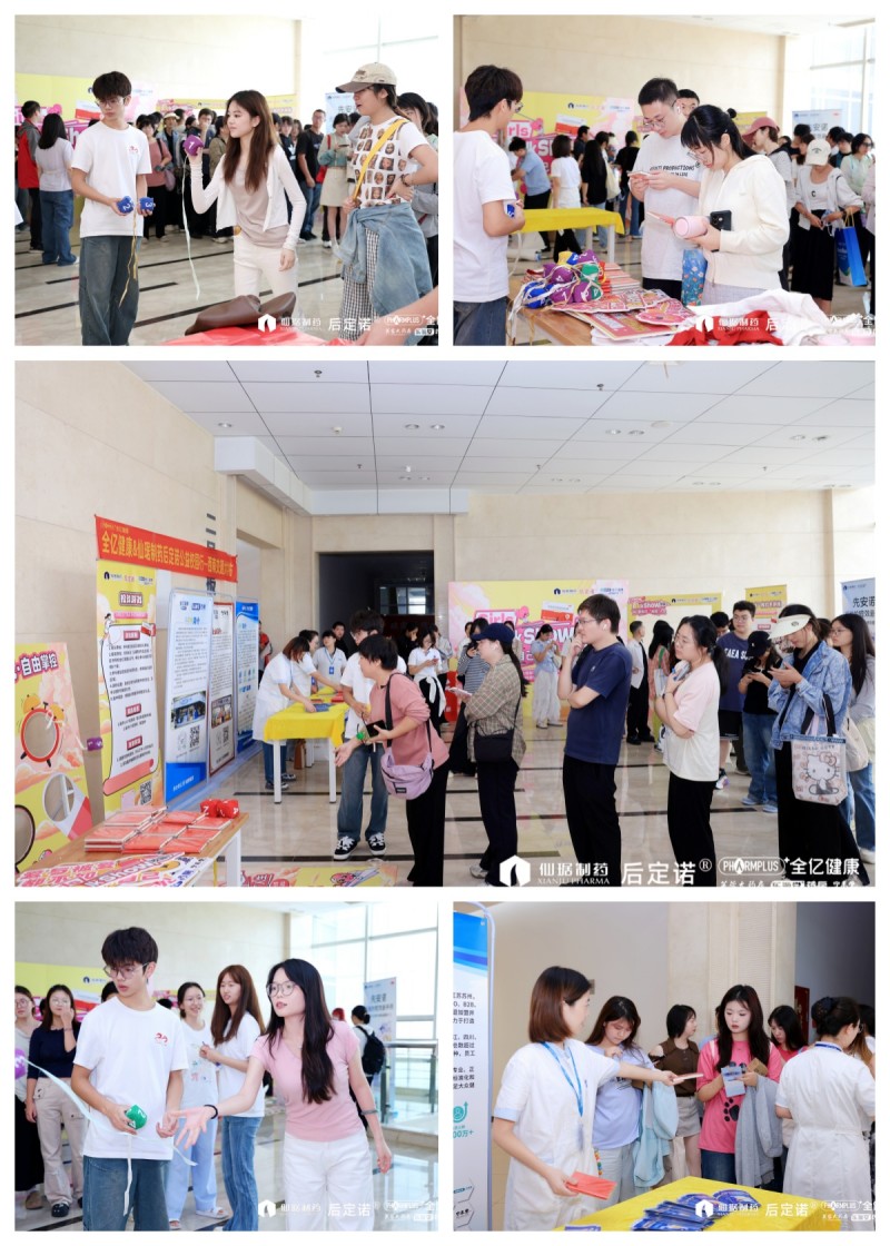 打卡C位引爆現場,青春體驗賦能品牌 場內的討論仍余音繞梁,場外的體驗區已化作一片青春涌動的海洋。仙琚制藥以“仙愛自己,后定人生”為主題打造的互動樂園,成為整場最具人氣的聚集地——創意打卡裝置、健康科普問答、限定主題文創,每一處都吸引學生踴躍嘗試。他們三五成群,在游戲中默契配合,在歡笑中收獲驚喜;更多人主動舉起印有品牌slogan的手舉牌,留下張揚又自信的影像。那一刻,健康知識與品牌溫度不再抽象,而是可觸、可感、可共鳴的生活主張。